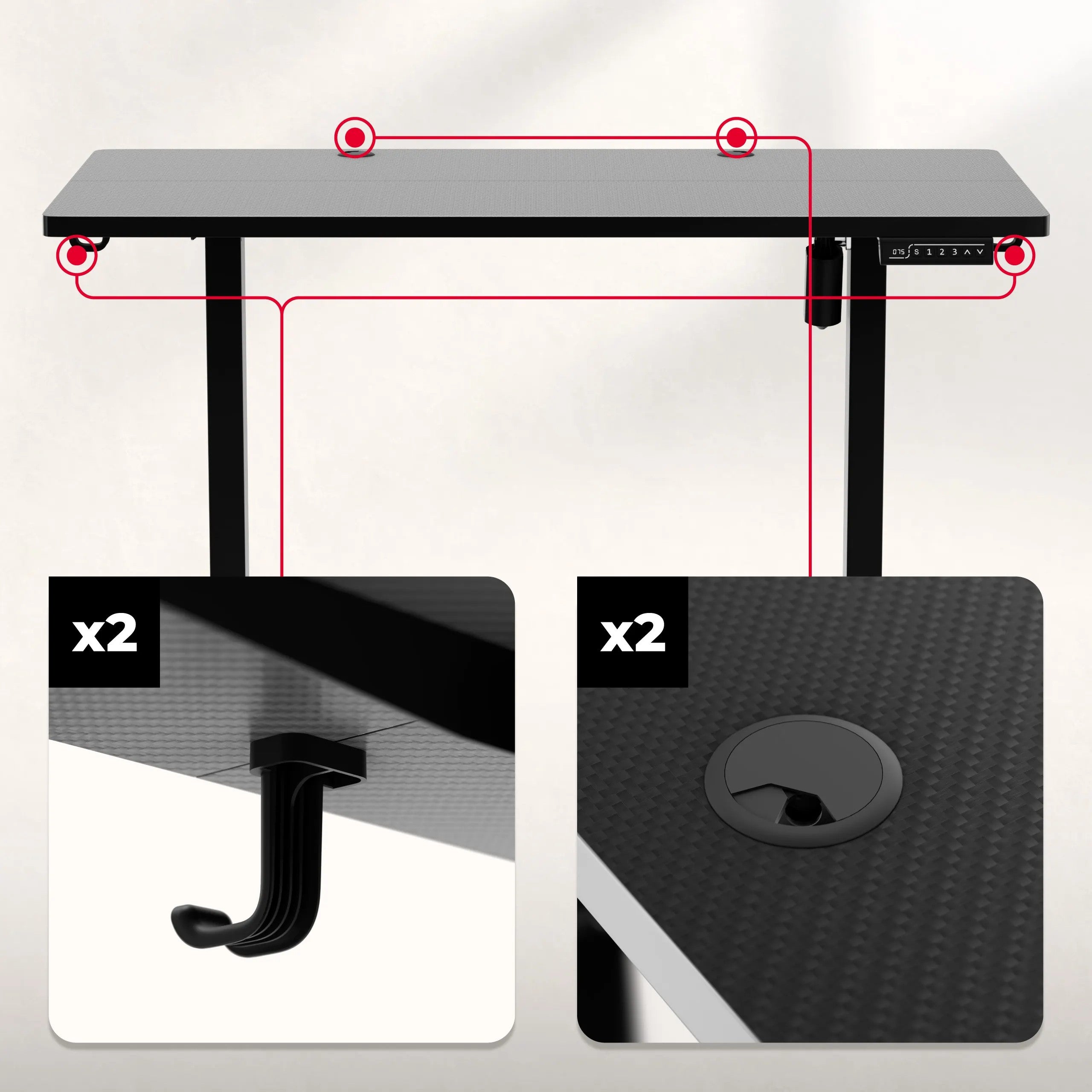 • Přizpůsobte si výšku stolu dokonale své výšce a stylu práce. Pracujte ergonomicky a vyhněte se bolestem zad – získejte plný komfort i při dlouhém sezení.